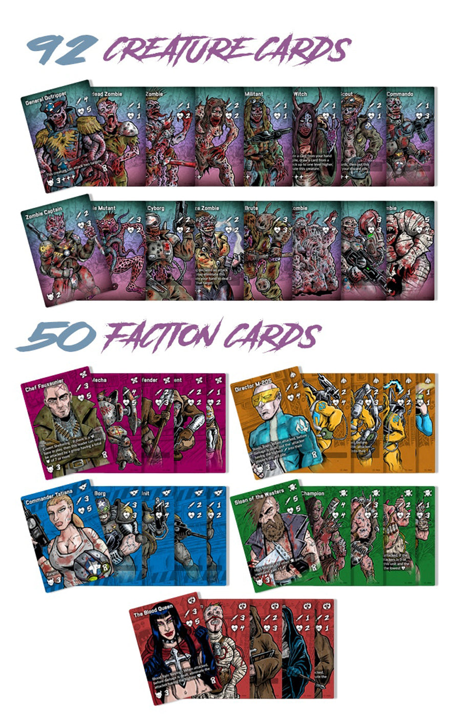 In this cooperative combat card game based on the comic series, players take command of the demonic zombie hordes of Hell. They collaboratively confer together, then take turns attacking the faction cards in play, intent on eliminating humankind's last remaining strongholds. Meanwhile, the factions offer an ongoing resistance as they strive to establish their game ending survival conditions. Combat is quick, based on stats comparison, yet remains diverse from the wide range of abilities. Game flow is fast paced, yet decisions still have depth, including some deck building undertones. Pick up the game and gather your friends. Do you have what it takes to achieve Gaia's ambition?