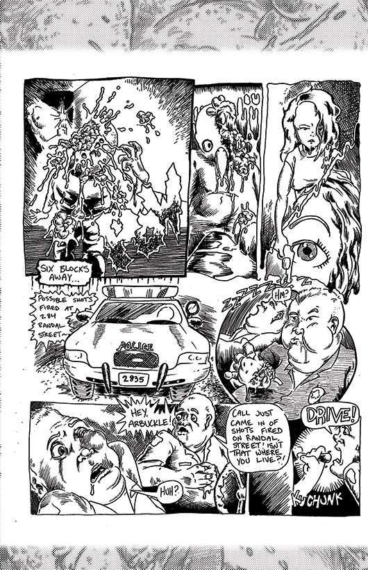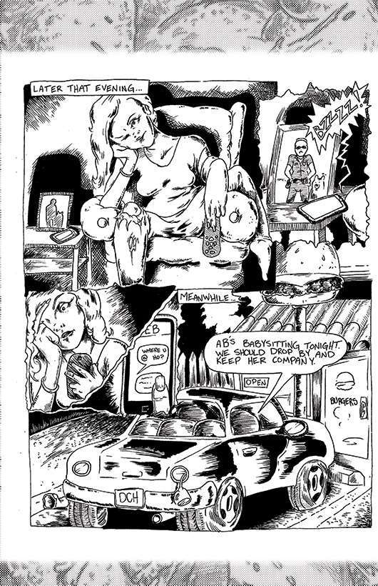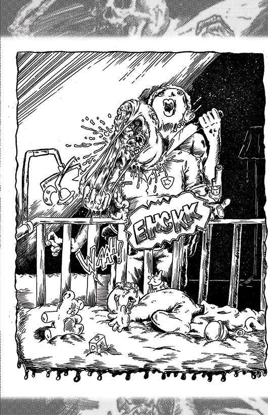 A sweet, virginal babysitter and her friends fall victim to a vicious attack from a pair of masked sadists as a suburban home becomes a slaughterhouse flooded with guts, rape, dismemberment and anarchistic chaos. Their vengeful onslaught aims to reduce every living and DEAD human in sight to an indistinguishable pulp! ENJOY. also Featuring an 8-page comic, "A Shitty Comic About Feces". Gorepump is an illustrator whose hand is guided by Satan.