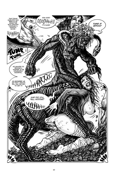 This 192 page volume features all 21 episodes of extreme sex, fantasy and folklore. An erotic-vampiric adventure based on European legends which, served by the author's immediately recognizable style, draws at will from female archetypes and their darkest and most sensual aspects.