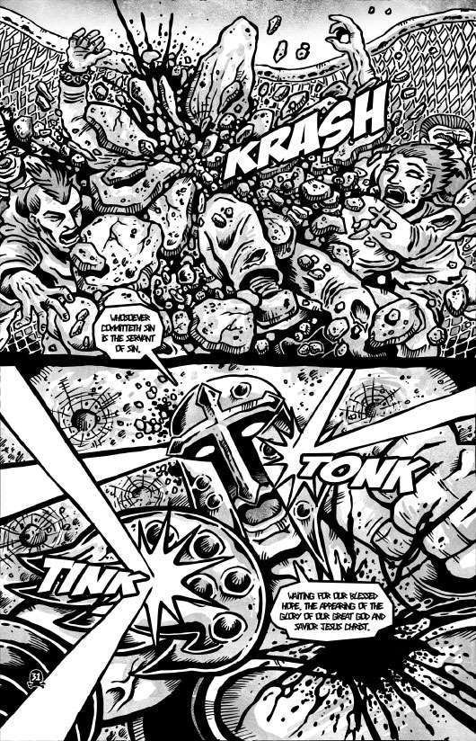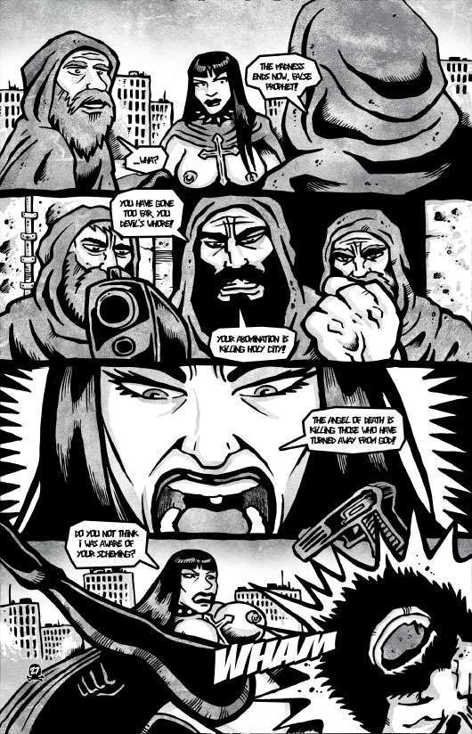 In a post-apocalyptic world devasted by war and pollution, run over by militias, cannibal bikers, cyborgs and mutants, survivors find refuge in the mysterious city-state of Holy City. Within its impressive walls rules a mighty christian fundamentalist cult that protects... and exploits. That is, until one of its victims rises to power through elaborate schemes and treachery to finaly unleash a mighty avenging angel!